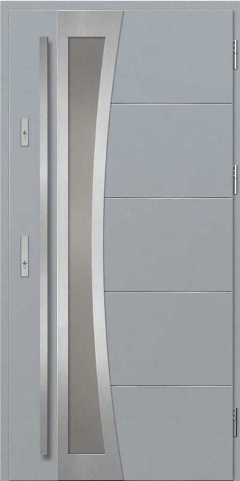 Exterior doors made of steel sheet, protected by PVC laminate, which is characterized by high resistance to changing weather conditions, UV radiation and mechanical damage. The texture adapted to the decorative motif creates a product with high aesthetic qualities.